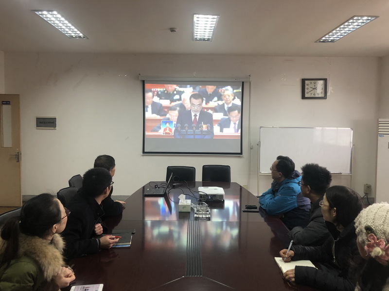 3月5日上午9时,第十三届全国人民代表大会第二次会议在人民大会堂举行开幕会,15VIP太阳集团党委领导班子及三办工作人员集中观看了开幕会,各教职工也通过广播、电视、新媒体平台等不同方式,收听收看开幕会盛况,并认真聆听国务院总理李克强关于政府工作的报告。