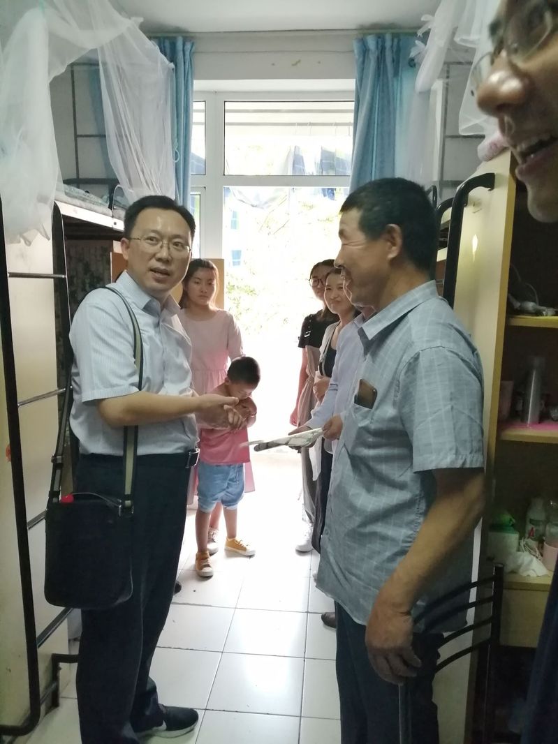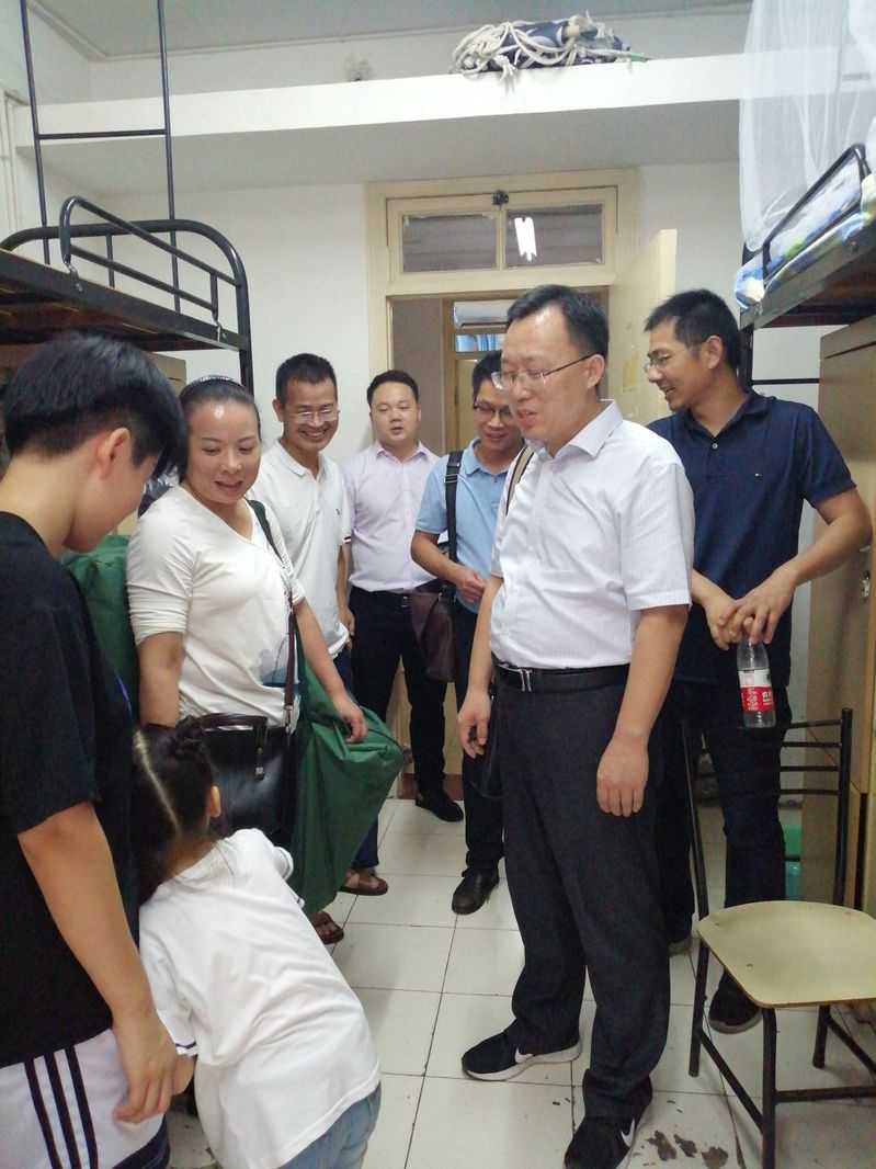 9月9日下午,15VIP太阳集团院长田剑、副院长戴俊和党委副书记毛晖在年级辅导员老师的陪同下走进新生寝室,慰问新生。