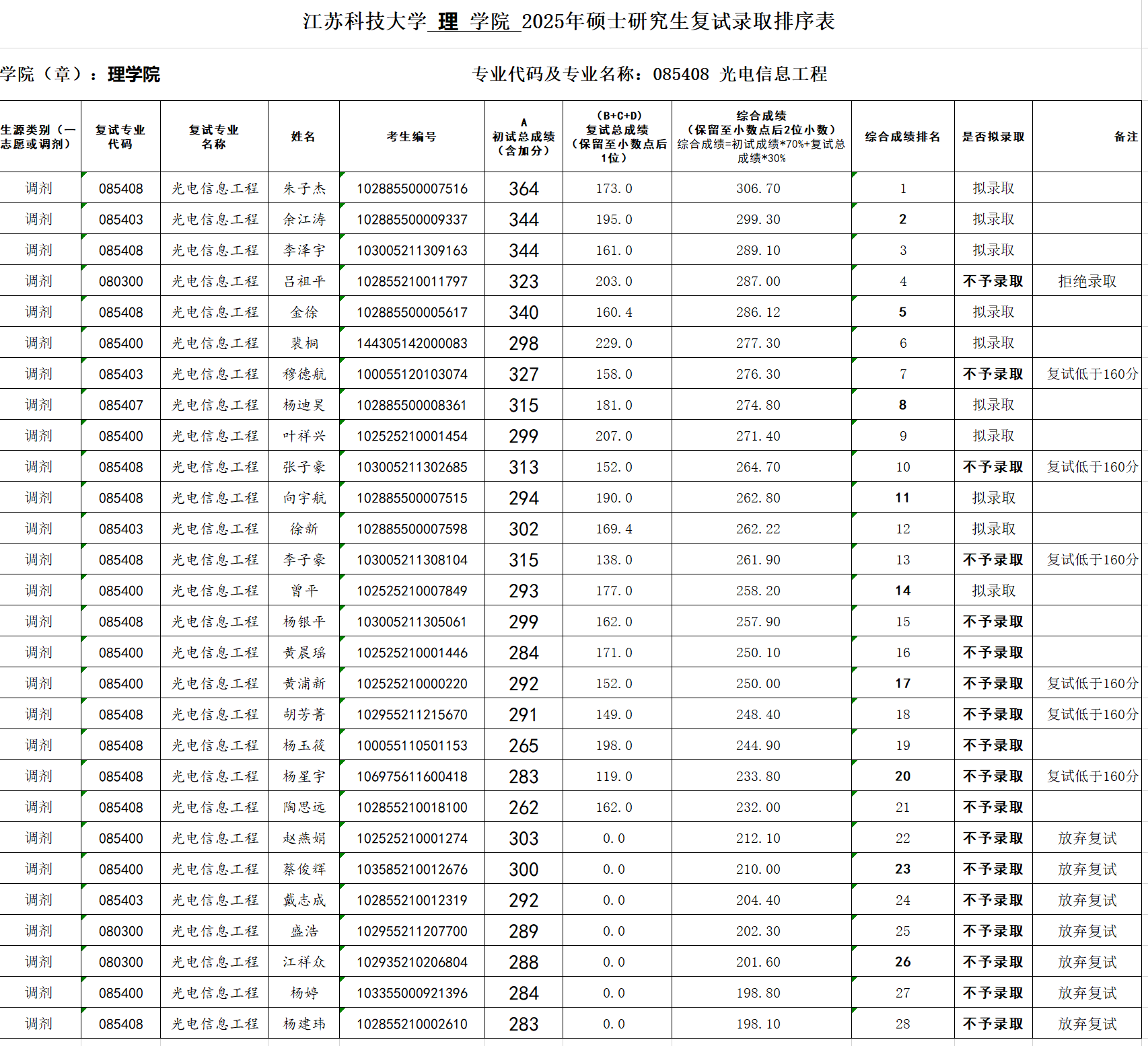 根据15VIP太阳集团研究生复试细则(已发布公告),2025年15VIP太阳集团物理学学硕、系统科学学硕、光电信息工程专硕和应用统计专硕第一批调剂复试成绩公示如下: