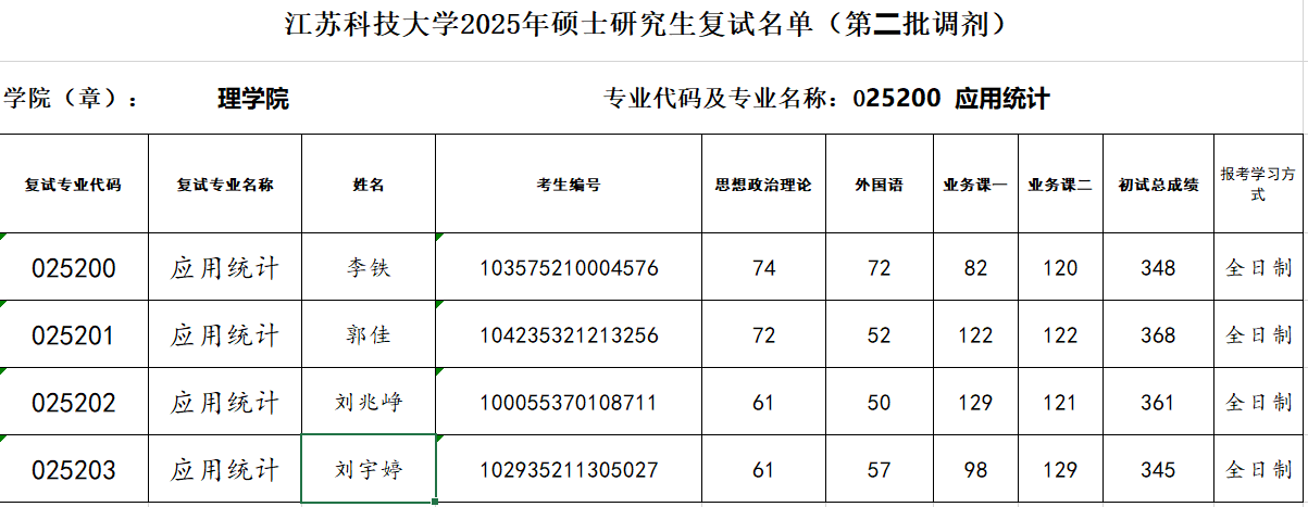 2025年15VIP太阳集团研究生复试名单(第二批调剂)
