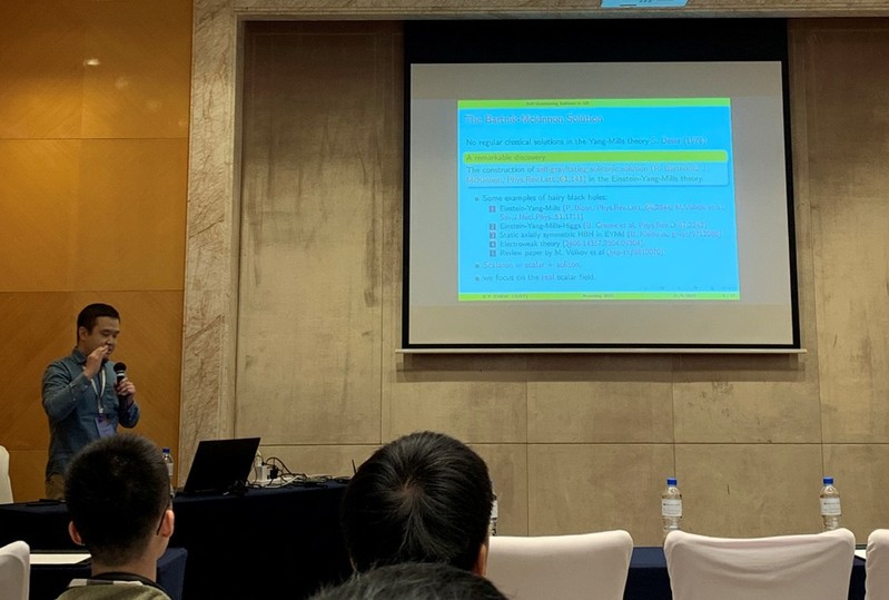 在接下来的两天中,会议进入各个研究方向的分会场报告阶段。4月21日上午,我院的两位教师—陈超老师与周孝严老师分别作了学术报告,展示了我院引力与宇宙学团队在前沿理论物理研究方面的最新成果,他们的报告总结如下: